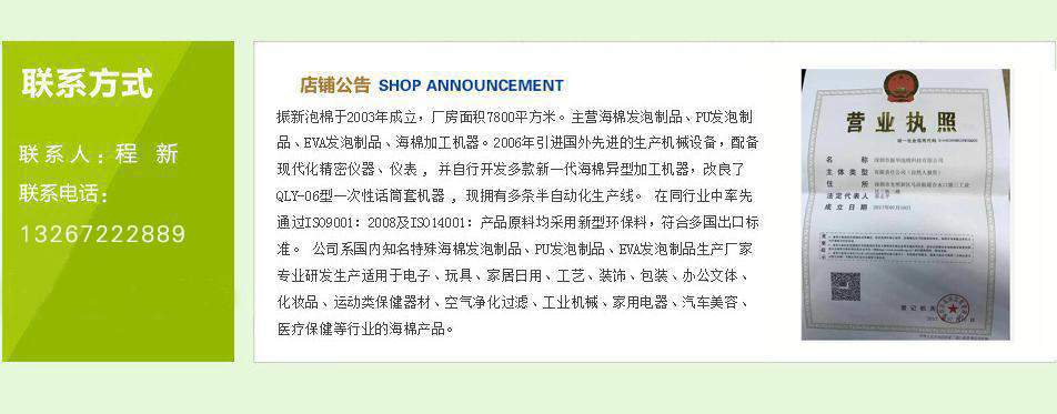 深圳市振新泡棉科技有限公司于2003年成立,廠(chǎng)房面積7800平方米。主營(yíng)海棉發(fā)泡制品、PU發(fā)泡制品、EVA發(fā)泡制品、海棉加工機(jī)器。2006年引進(jìn)國(guó)外先進(jìn)的生產(chǎn)機(jī)械設(shè)備,配備現(xiàn)代化精密儀器、儀表 , 并自行開(kāi)發(fā)多款新一代海棉異型加工機(jī)器,改良了QLY-06型一次性話(huà)筒套機(jī)器 , 現(xiàn)擁有多條半自動(dòng)化生產(chǎn)線(xiàn)。 我們擁有一批經(jīng)驗(yàn)豐富的工程技術(shù)人員和高級(jí)管理人員,在同行業(yè)中率先通過(guò)ISO9001:2008及ISO14001:產(chǎn)品原料均采用新型環(huán)保料,符合多國(guó)出口標(biāo)準(zhǔn)。 公司系國(guó)內(nèi)知名特殊海棉發(fā)泡制品、PU發(fā)泡制品、EVA發(fā)泡制品生產(chǎn)廠(chǎng)家,專(zhuān)業(yè)研發(fā)生產(chǎn)適用于電子、玩具、家居日用、工藝、裝飾、包裝、辦公文體、化妝品、運(yùn)動(dòng)類(lèi)保健器材、空氣凈化過(guò)濾、工業(yè)機(jī)械、家用電器、汽車(chē)美容、醫(yī)療保健等行業(yè)的海棉產(chǎn)品。 產(chǎn)品的類(lèi)型如:高密度聚酯海棉、普通海棉、異型定型海棉、防火/阻燃海棉、高回彈/慢回彈海棉、過(guò)濾網(wǎng)狀海棉、EVA玩具禮品、PU發(fā)泡定型玩具禮品等等。產(chǎn)品名稱(chēng)如:耳機(jī)/話(huà)筒KTV海棉套、海棉圓球、洗刷海棉、吸水海棉、木漿海棉、化妝海棉、相機(jī)海棉、墨盒海棉、壓縮海棉、橡膠海棉、粗細(xì)孔過(guò)濾海棉、波峰隔音海棉、醫(yī)用海棉、海棉枕頭、包裝防震海棉、1mm厚海棉、電子/醫(yī)用海棉棉簽、EVA球、EVA智力拼圖、EVA鑰匙扣、PU座墊、PU公仔、PU球類(lèi)等等。 我們還獲得多家國(guó)際知名廠(chǎng)商的授權(quán)資格,代理多品種家庭用品。 產(chǎn)品多年來(lái)一直銷(xiāo)往全球,深受廣大用戶(hù)和客商的青睞。